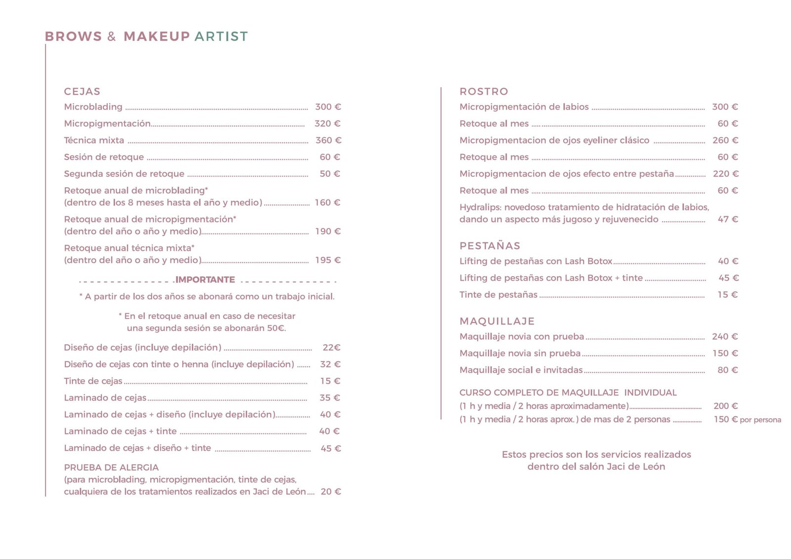 Con más de 20 años de experiencia en estética, Jaci de León ofrece tratamientos personalizados en nanoblading y micropigmentación en Madrid, destacando por su enfoque en la naturalidad y la atención exclusiva.